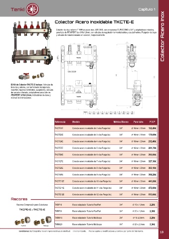 TKCTE12E Colector acero inoxidable de 12 vías Purga Aut. 3/4” Ø 16mm / 20mm 513,60€