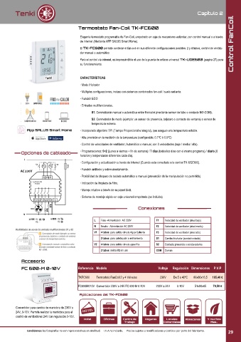 El TK-FC600 permite controlar el fan-coil en sus diferente configuraciones posibles: 2 y 4 tubos, control de ventila-