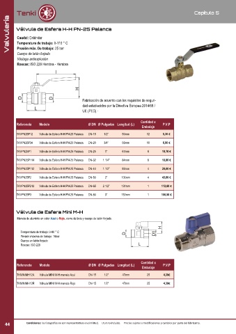 Valvulería Válvula de Esfera H-H PN-25 Palanca Capítulo 5